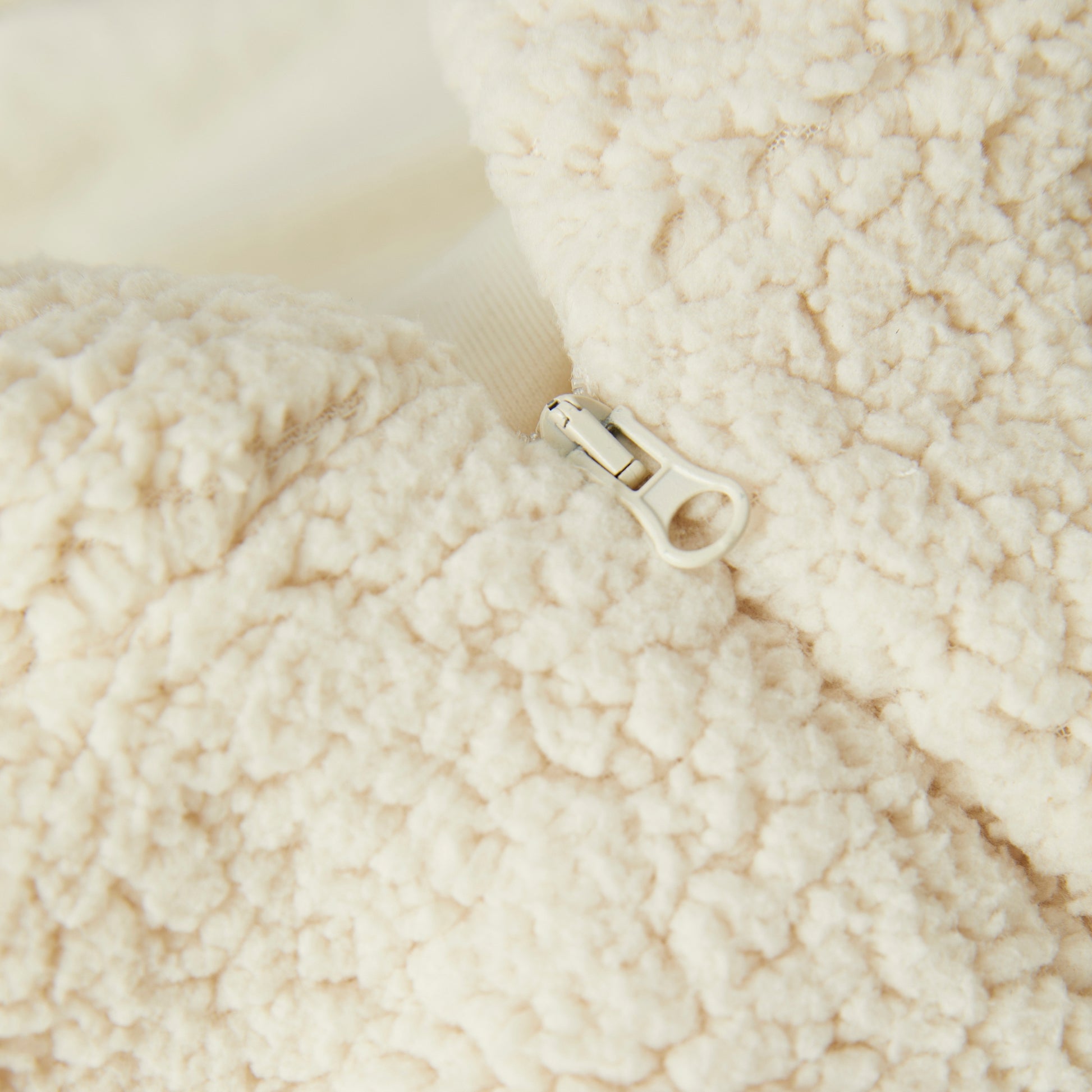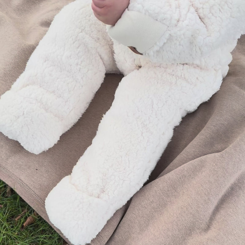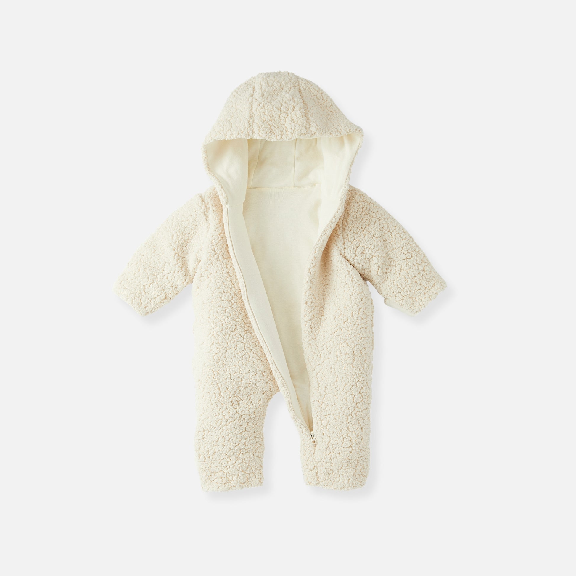 Dit teddypak is gemaakt van gerecycled polyester teddy en gevoerd met ultrazacht biologisch katoen – zowel milieubewust als comfortabel, ideaal voor de gevoelige huid van je kleintje. Voor extra comfort hebben de mouwen en pijpen omklapbare boorden die handjes en voetjes warm houden wanneer dat nodig is.